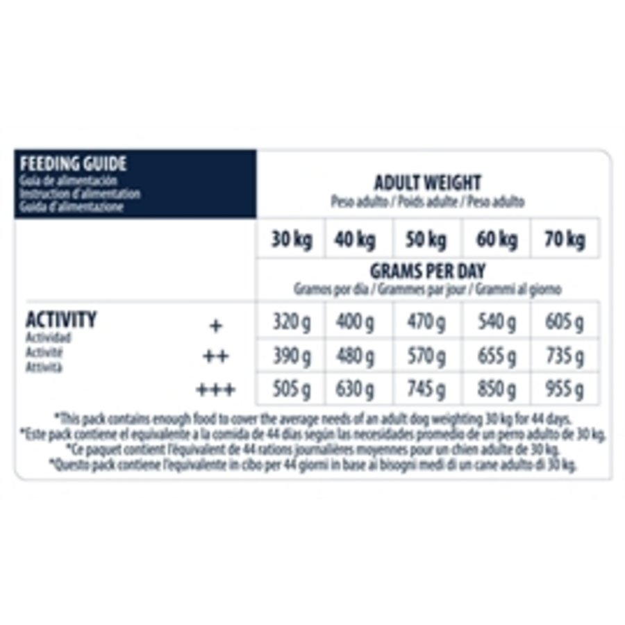 Samenstelling: kip (16%), tarwe, gedehydrateerde gevogelte-eiwitten, maïs, rijst (10%), maïseiwit, gehydrolyseerde dierlijke eiwitten, bietenpulp, visolie, plasma-eiwitten, natuurlijke bron van immunoglobulinen (0,4%), zout, tetrasodium difosfaat (0,29) %), glucosamine (445 mg / kg), chondroïtinesulfaat (350 mg / kg), natuurlijke polyfenolen (0,01%),