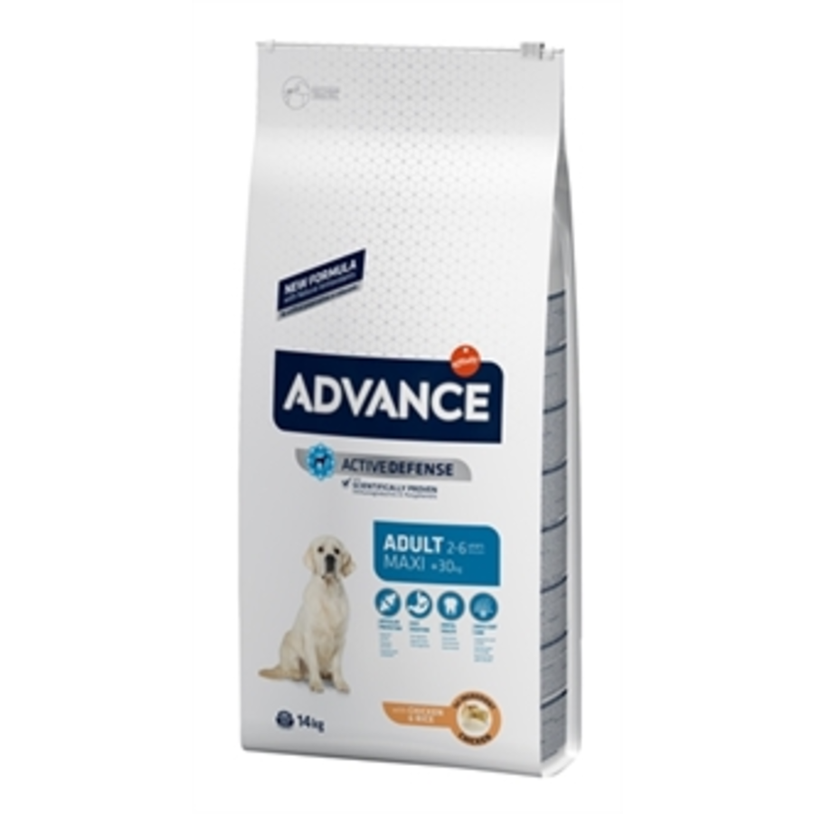 De Advance Maxi Adult 14 kg is een volledig, gemakkelijk verteerbaar hondenvoer speciaal gemaakt voor volwassen honden van grote rassen.
