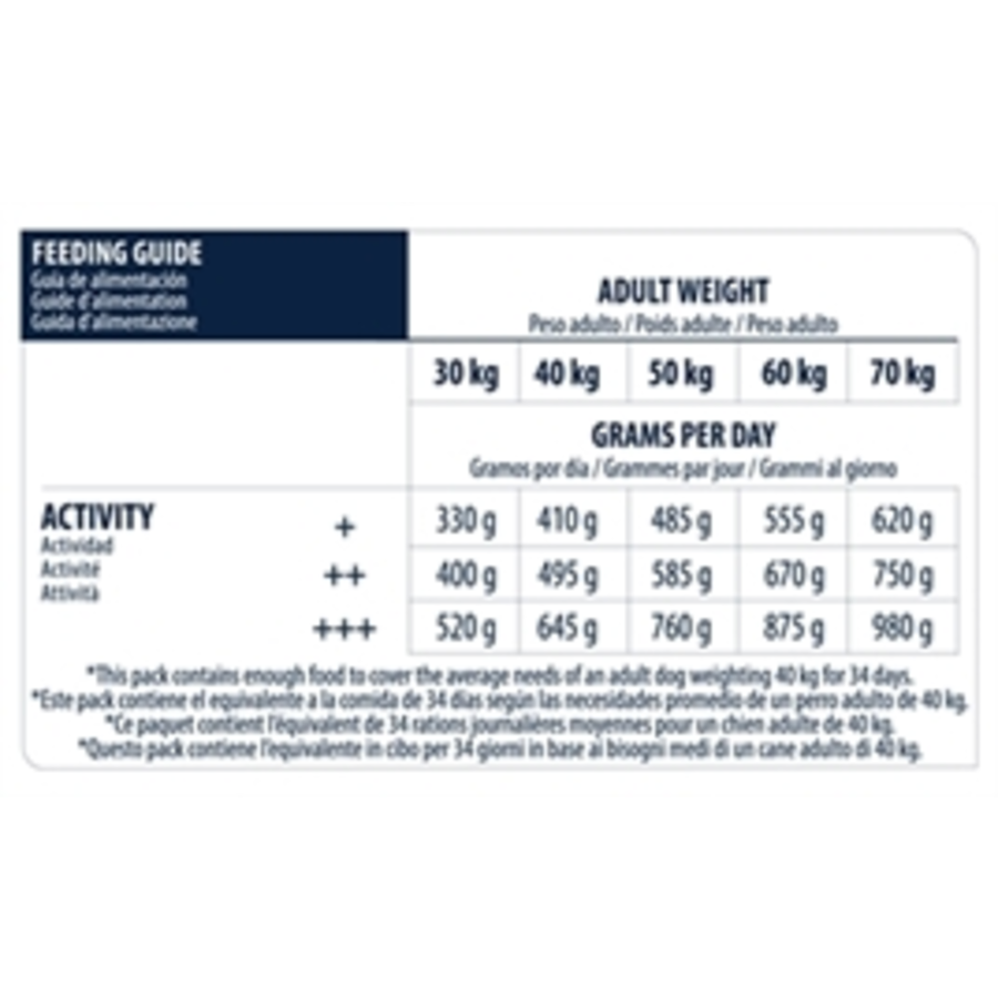 Samenstelling: kip (14%), maïs, tarwe, maïseiwit, gedehydrateerde gevogelte-eiwitten, rijst (10%), maïsmeel, maïszemelen, dierlijk vet, gestabiliseerd met gemengde tocoferolen van natuurlijke oorsprong, bietenpulp, gehydrolyseerde dierlijke eiwitten, visolie, kalium chloride, gist, plasma-eiwitten, natuurlijke bron van immunoglobulinen (0,4%), tetrasodium difosfaat (0,25%), glucosamine (455 mg / kg), chondroïtinesulfaat (350 mg / kg), natuurlijke polyfenolen (0,01%),