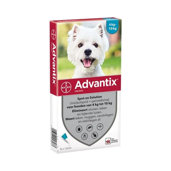 - – Honden met een lichaamsgewicht van 4 – 10 kg: Advantix 100/500