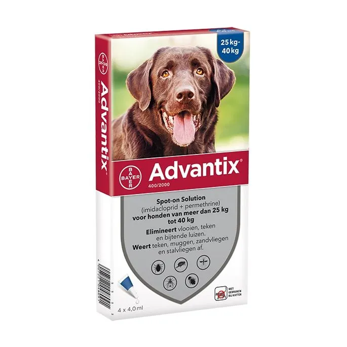 - – Honden met een lichaamsgewicht van 25 – 40 kg: Advantix 400/2000