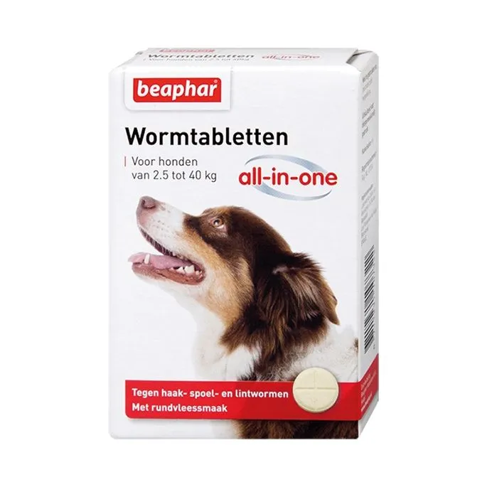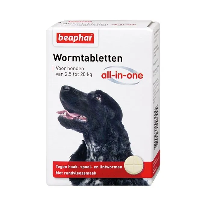 Hoe vaak een wormkuur toegepast dient te worden hangt af van o.a. de leeftijd en de omgeving van het dier. Gemiddeld is dit 4x per jaar. Indien uw hond meegaat op vakantie, is het verstandig navraag te doen of voor het betreffende land een ander advies geldt.Kijk voor een advies op maat of meer informatie over ontwormen op: www.wegmetwormen.nlSamenstelling: Praziquantel 175 mg, Pyrantel (als pyrantelembonaat) 175 mg en Febantel 525 mg.
