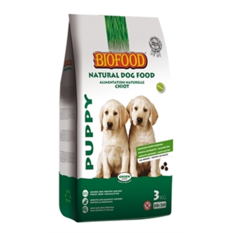 De puppy levensfase is erg belangrijk en bepalend voor een krachtig, vitaal en gezond leven wanneer uw hond volwassen wordt. BIOFOOD Puppy is een volledige licht verteerbare, natuurlijke en smaakvolle voeding voor honden in de eerste levensfase. U kunt vanaf 3 weken tot maximaal 12 maanden, afhankelijk van het ras, de puppybrok voeren.