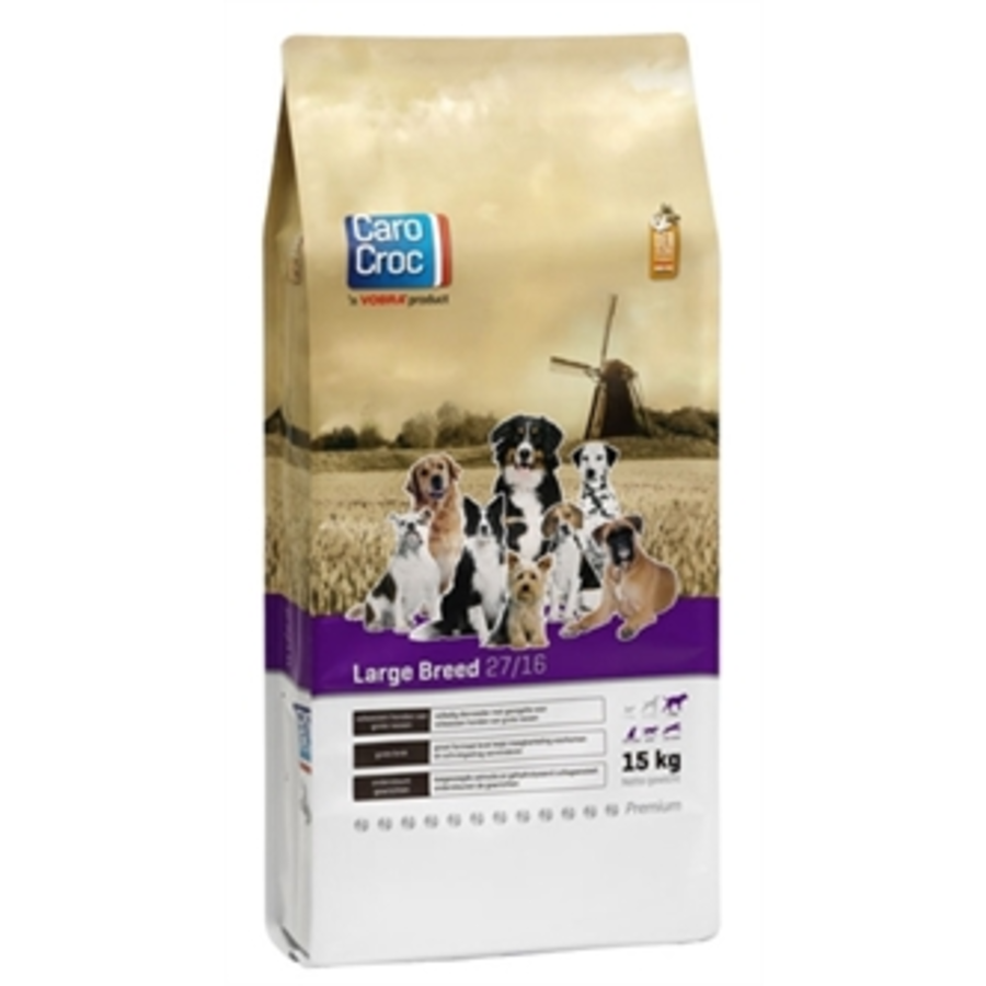 CaroCroc Large Breed bevat 27% eiwit en 16% vet. Daarnaast bevat CaroCroc Large Breed een optimale omega-3 en -6 verhouding.