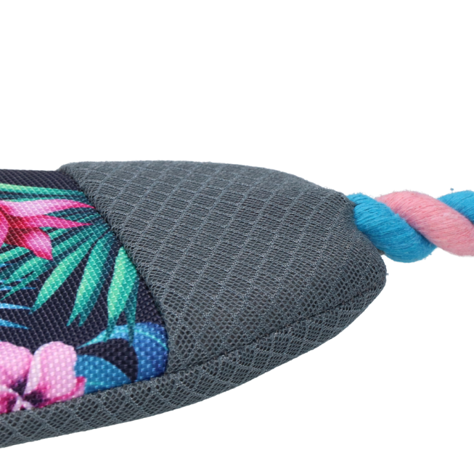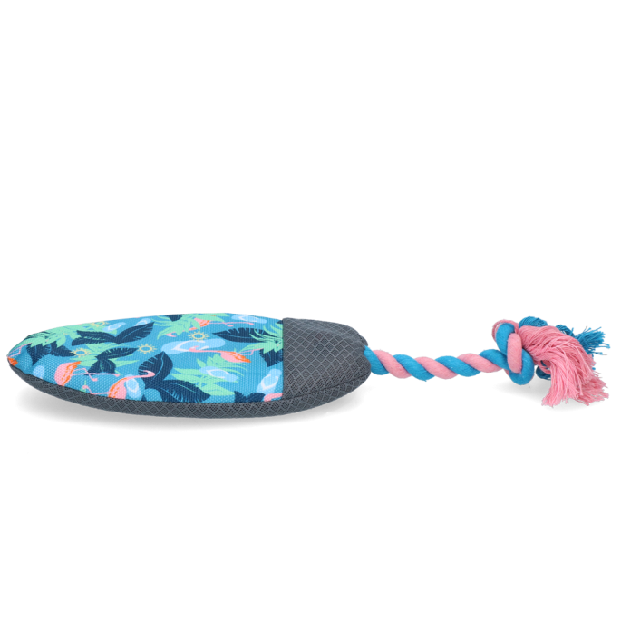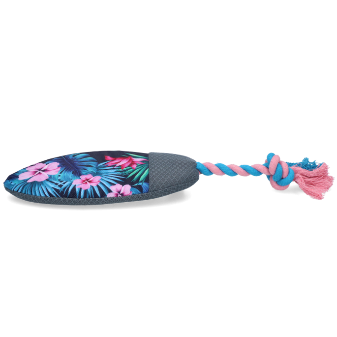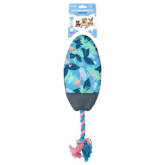 Een surfplank speciaal voor je hond; Surf’s Up is het nieuwe favoriete speeltje van de hond deze zomer! Als een echte surfplank blijft dit speeltje drijven op water en kan de hond er heerlijk mee in het water spelen. Daarnaast neemt het water op, dat vrij komt in de bek zodra de hond erin bijt. Zo helpt het uitdroging voorkomen. Het speelplezier wordt compleet dankzij het leuke kraakmateriaal, het piepje en het flosstouw, dat helpt met het reinigen van de tanden.