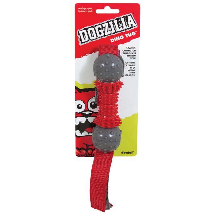 Gemaakt van 2 duurzame materialen namelijk thermoplastische hars in combinatie met canvas linten. De Dogzilla Dino Tug is zacht in de bek en het rubber noppen profiel zorgt voor extra grip, reinigt het gebit en masseert het tandvlees. De nylon flappen maken lawaai bij het schudden dit zorgt voor extra speelplezier.