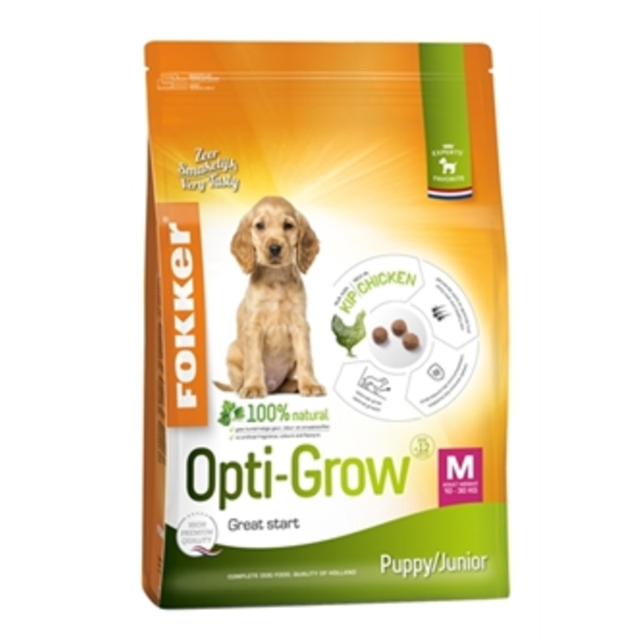 Fokker opti-grow puppy / junior medium is volledige diervoeding voor honden.