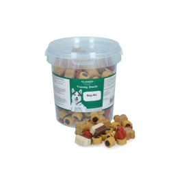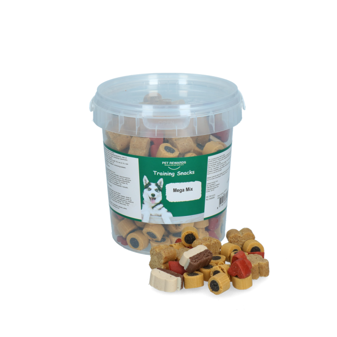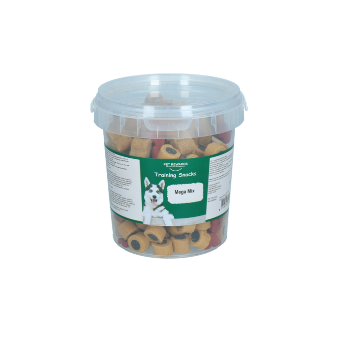 Een feest voor iedere hond, deze mooi mix van trainer-snacks gemaakt van vlees, een semi-moist soft beloning. Dit houdt in dat deze snacks nog licht vochtig zijn en daardoor extreem krachtig zijn in smaak en geur. Daarom zijn dit ook de ideale snacks voor hondentrainers en baasjes om hun honden en pups te belonen bij goed gedrag tijdens een training of cursus. Deze trainer-snack bevat geen toegevoegde suikers en het mooiste van alles is dat deze snoepjes van Pet Rewards gemaakt zijn in Nederland! Verpakt in een handige hersluitbare emmer.