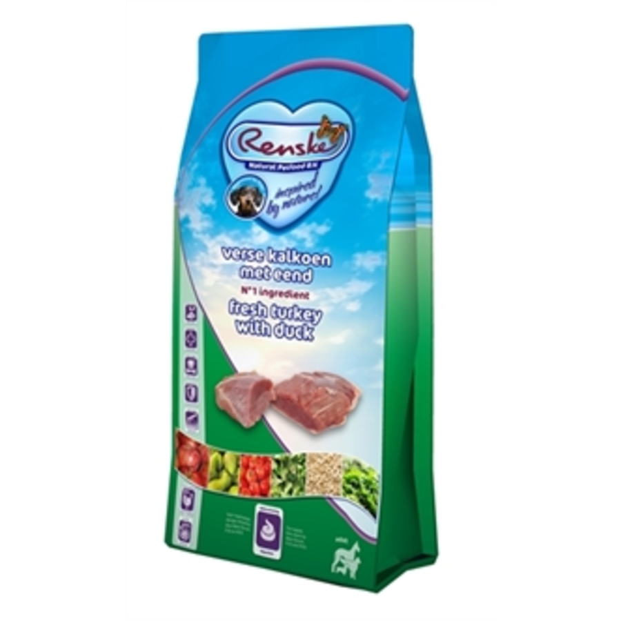 Een complete voeding met verse kalkoen & eend voor de hond.