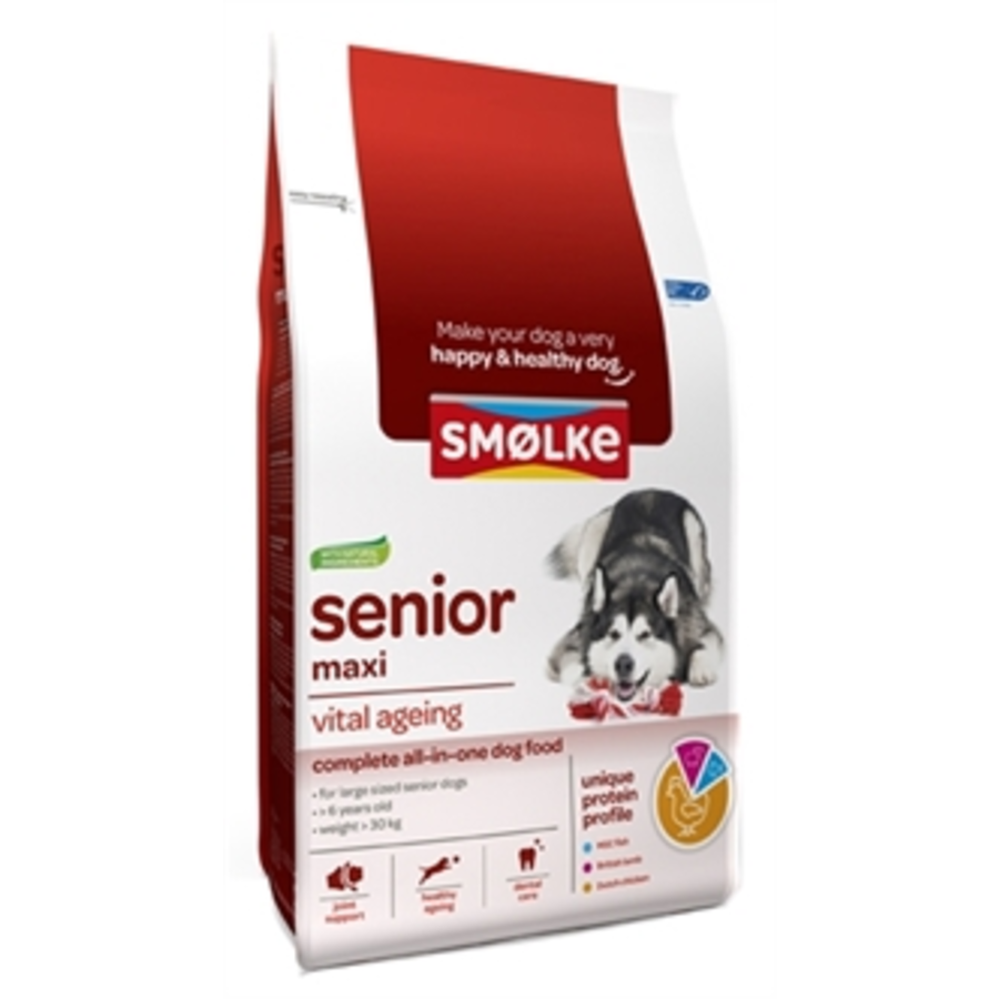 Smølke Senior Maxi is een volledig Alles-in-één hondenvoer met natuurlijke ingrediënten dat jouw senior hond helpt bij het vitaal ouder worden.